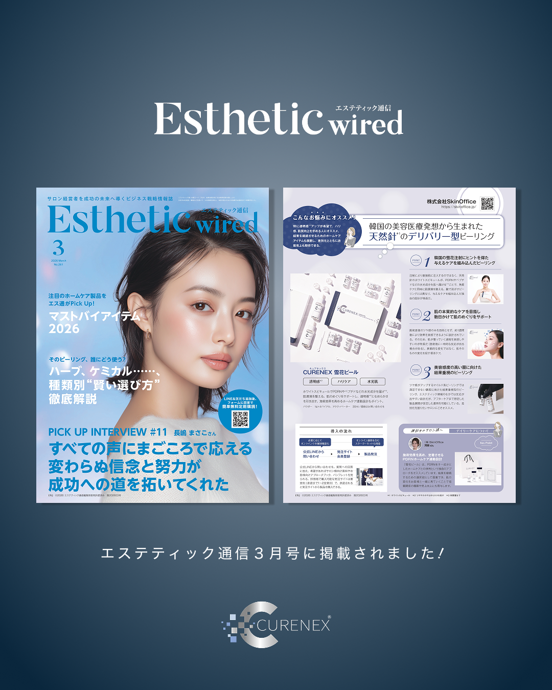 このたび、業界誌「エステティック通信(Esthetic wired)」2026年3月号に、CURENEX「雪花ピール」を掲載いただきました。